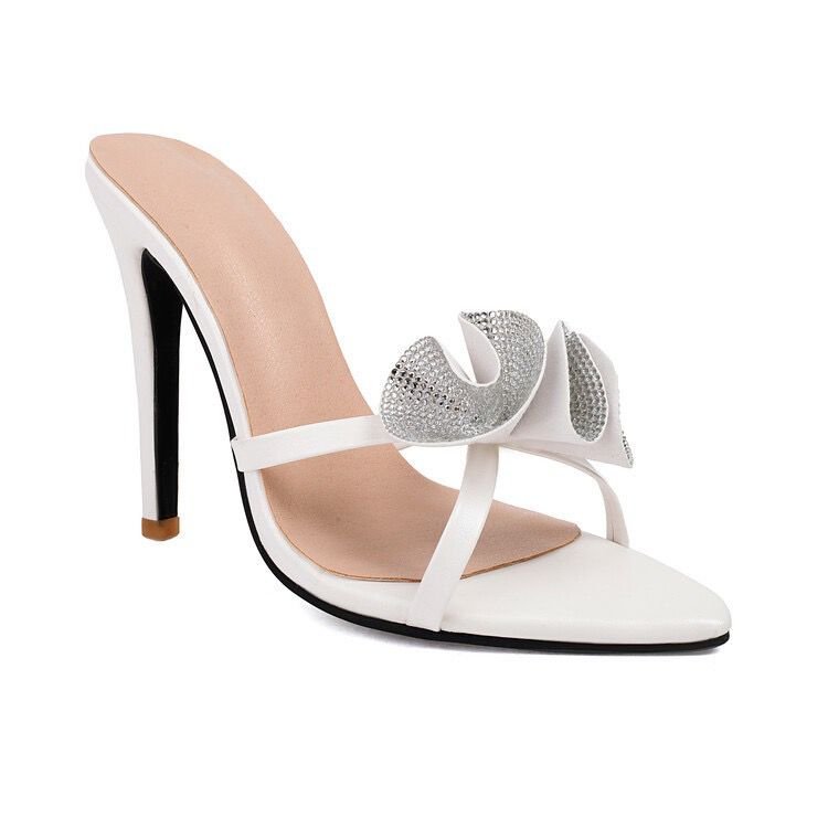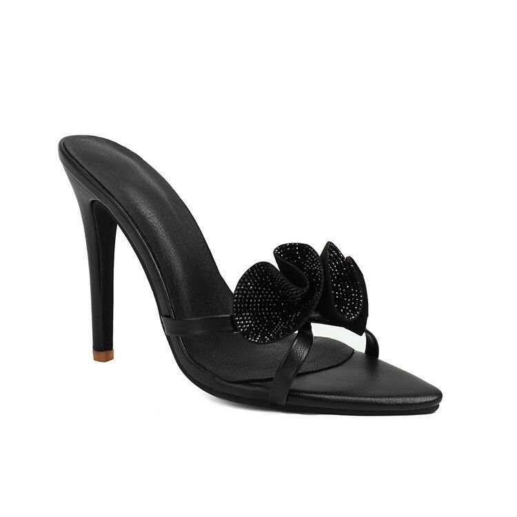 Chic high heels featuring a sculptural bow detail and open toe design, available in classic black or white.
